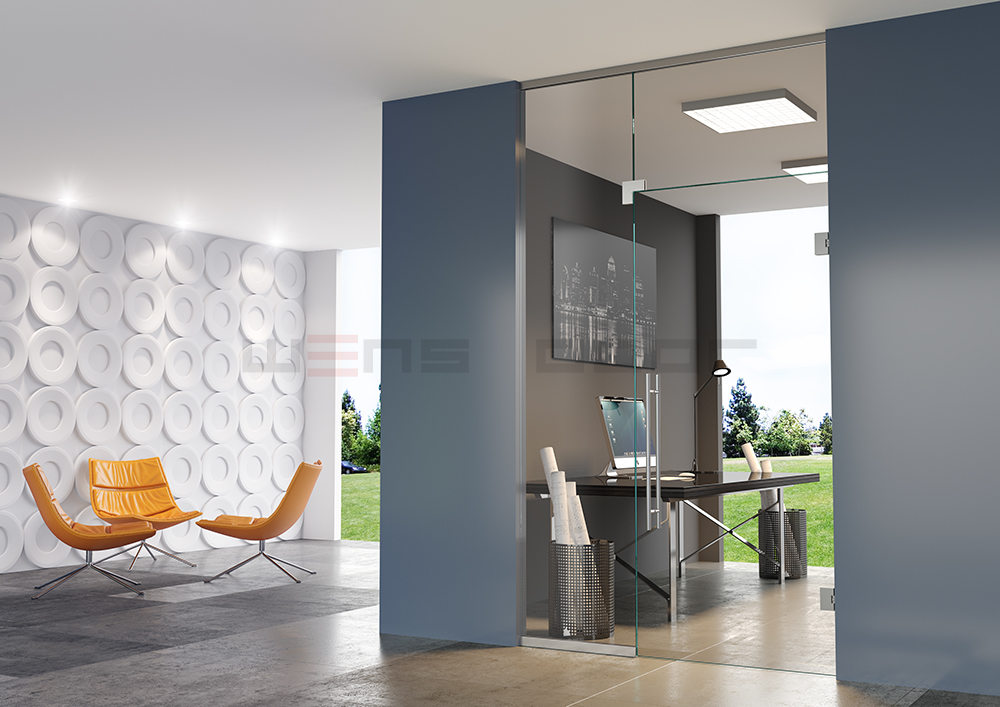 Celosklenené dvere s pántami upevnenými do steny
