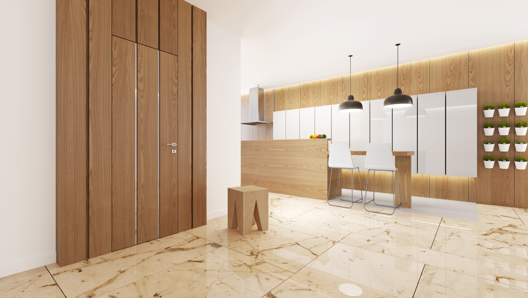 Ploché dvere s vertikálnou orientáciu dyhy alebo vo farebných odtieňoch RAL a NCS.