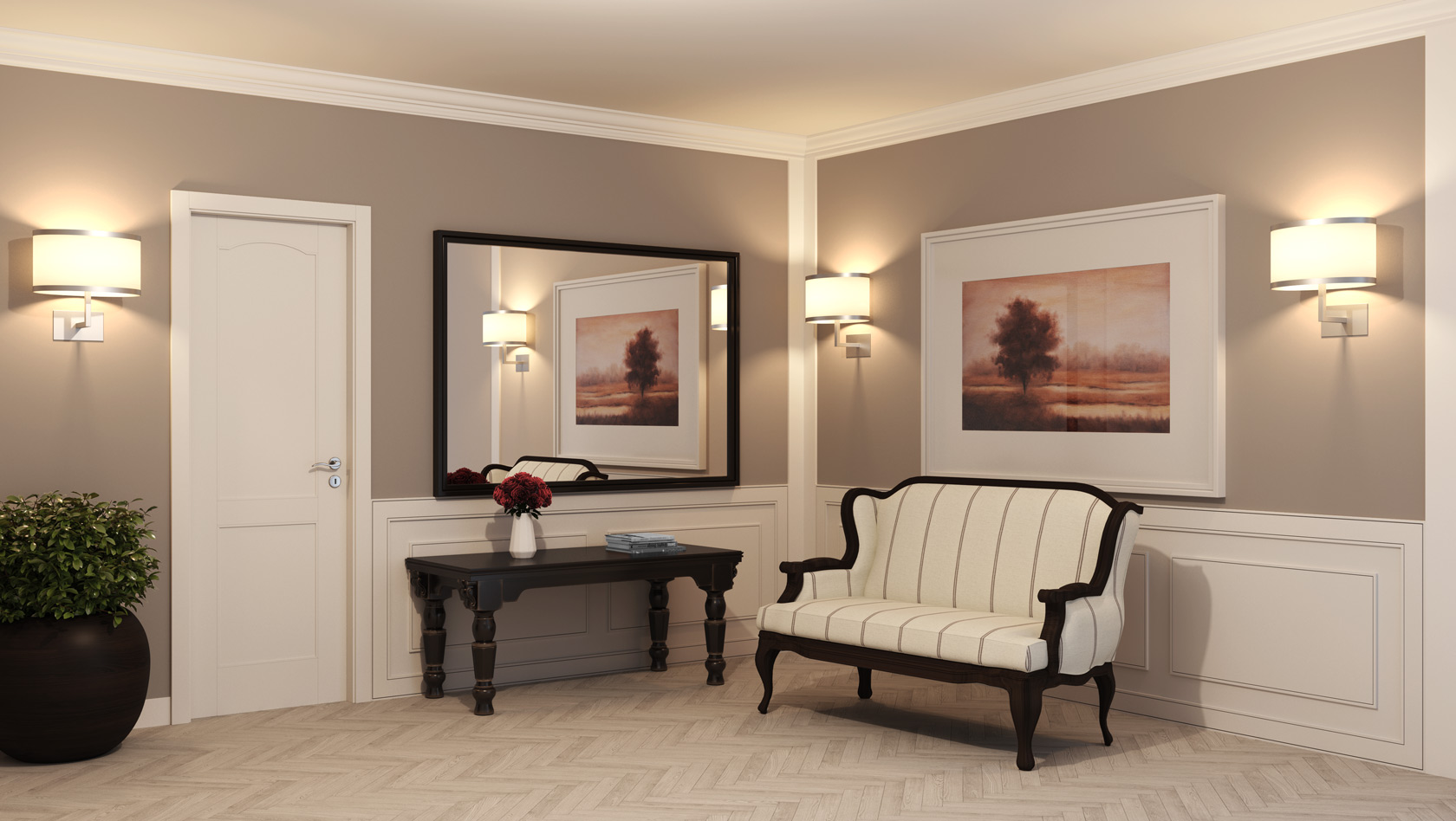 Dvere s kazetou alebo sklom ukončené vlnkou, doplnené lištami